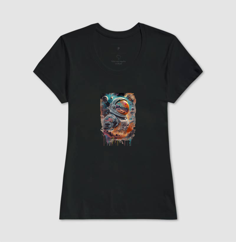"Entre Mundos" Nossa nova estampa traz um astronauta solitário diante de majestosas montanhas rochosas, como se estivesse explorando um mundo desconhecido. O toque especial fica por conta do efeito de aquarela, dando uma sensação de sonho e imensidão. Perfeita para quem ama astronomia, arte e o espírito da exploração. Disponível em diferentes tamanhos e cores. Garanta a sua e leve o cosmos para o seu dia a dia!