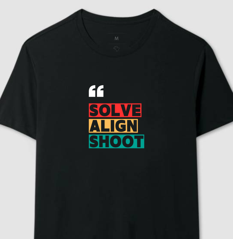 Camiseta "Solve, Align, Shoot" – Para Astrônomos e Astrofotógrafos Leve sua paixão pelo céu para o dia a dia com esta camiseta que fala a língua dos astrônomos! Inspirada no fluxo da astrofotografia, “Solve, Align, Shoot” celebra cada passo do processo: do plate solve ao alinhamento polar, até o clique final da captura. Confortável, estilosa e perfeita para quem vive olhando para as estrelas, seja no quintal ou no observatório. Detalhes: Material macio e durável Corte unissex Estampa de alta qualidade, resistente a lavagens Ideal para presentes a entusiastas da astronomia Mostre para o mundo que seu coração bate no ritmo das estrelas!