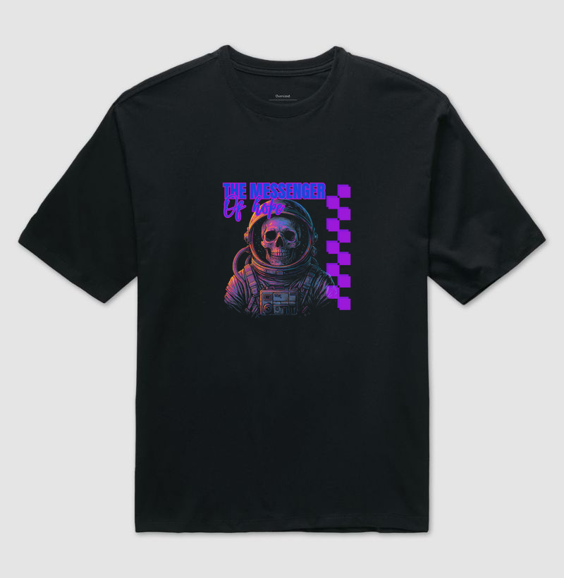 Entre em um mundo onde a esperança desafia a escuridão com a camiseta - O Mensageiro da Esperança. Com a impressionante estampa de um astronauta com rosto de caveira, o design simboliza resiliência, coragem e a busca destemida pela luz mesmo no vazio. Macia, estilosa e ousadamente única—use-a para inspirar, se destacar e levar esperança por onde passar.